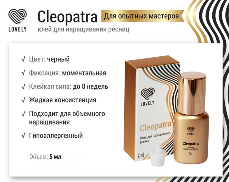 Для использования налить небольшое количество клея на специальную поверхность, например палетку для клея, нефритовый камень и др. и обмакнуть часть ресницы в каплю клея. Избегать попадания на кожу.