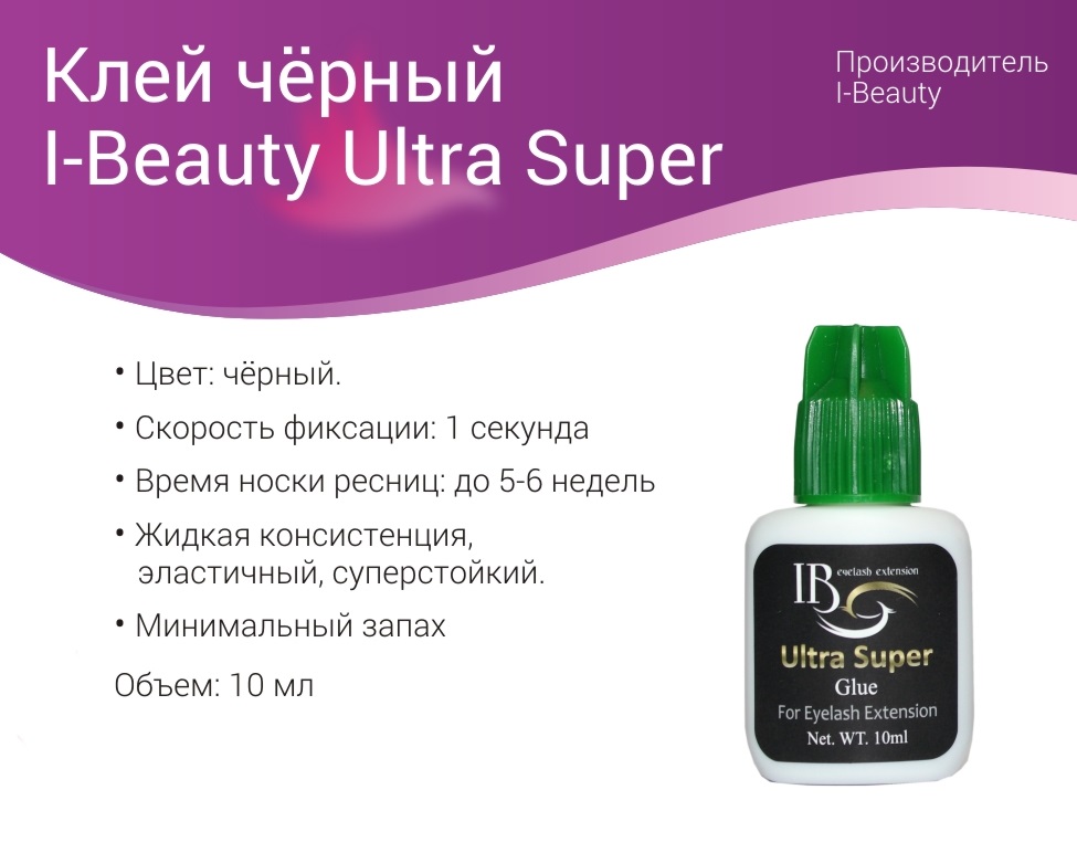 Клей для наращивания ресниц Ultra Super черный имеет отличные фиксирующие свойства.