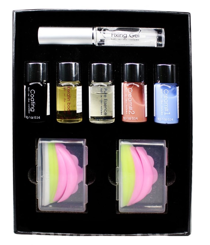 В состав набора для ламинирования ресниц «FALL IN THE VOLUME (WHOLE SET)» входят следующие препараты: