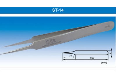 Прямой пинцет VETUS ST-14 изготовлен из высококачественной стали.